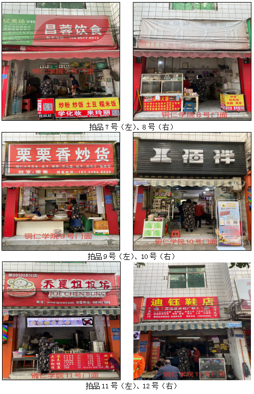 拍品34至46號(hào)標(biāo)的位于銅仁市清水大道實(shí)驗(yàn)小學(xué)東校區(qū),面積11.88——33.92㎡,租賃期3年(2021.04.01至2024.03.31止);