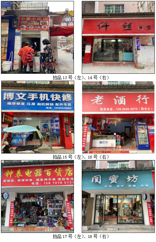 1.拍品1至21號(hào)標(biāo)的位于銅仁市清水大道銅仁學(xué)院附中旁,面積7——28㎡,租賃期3年(2021.05.01至2024.04.30止),交通便利,人流量大。