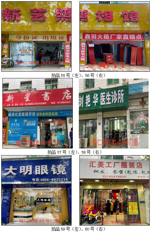 拍品58號(hào)標(biāo)的包含3個(gè)門(mén)面(銅仁學(xué)院41號(hào)、42號(hào)、43號(hào)門(mén)面)為整體拍租;