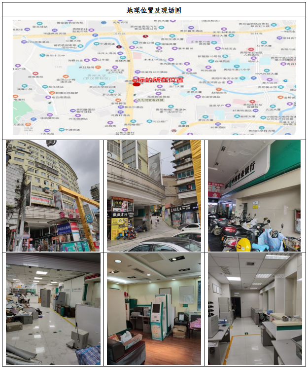 標(biāo)的位于貴陽市云巖區(qū)香獅路198、196號新里程商城1號樓F1層203號;該標(biāo)的分?jǐn)偼恋厥褂脵?quán)面積:98.51㎡ ,總建筑面積:285.72㎡,樓宇總層數(shù):9層,所在樓層:1層,地類用途:商業(yè)用地;土地使用權(quán)類型為出讓,土地使用權(quán)終止日期為:2053年10月23日,土地所有權(quán)為國家所有;建筑結(jié)構(gòu):混合結(jié)構(gòu);層高:3.3米,建筑用途為商住。