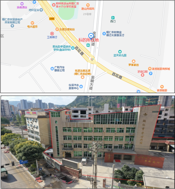 標(biāo)的描述:標(biāo)的位于銅仁市喻家坪,所在樓棟北臨百花路,東臨金鱗大道,其余兩面臨其它樓棟、街道。東距梵凈大道約500米,南距區(qū)府路約1000米,附近有銅仁九洲醫(yī)院、銅仁市第十八小學(xué),銅仁城南客車站等,生活服務(wù)配套設(shè)置齊全,地理位置非常優(yōu)越。