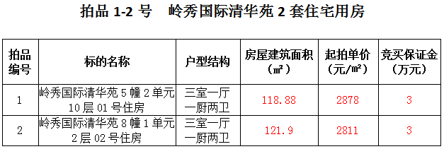 1、關(guān)嶺縣嶺秀國際2套住宅房產(chǎn),建筑面積:118.88—121.9㎡,起拍價:2811—2878元/㎡;