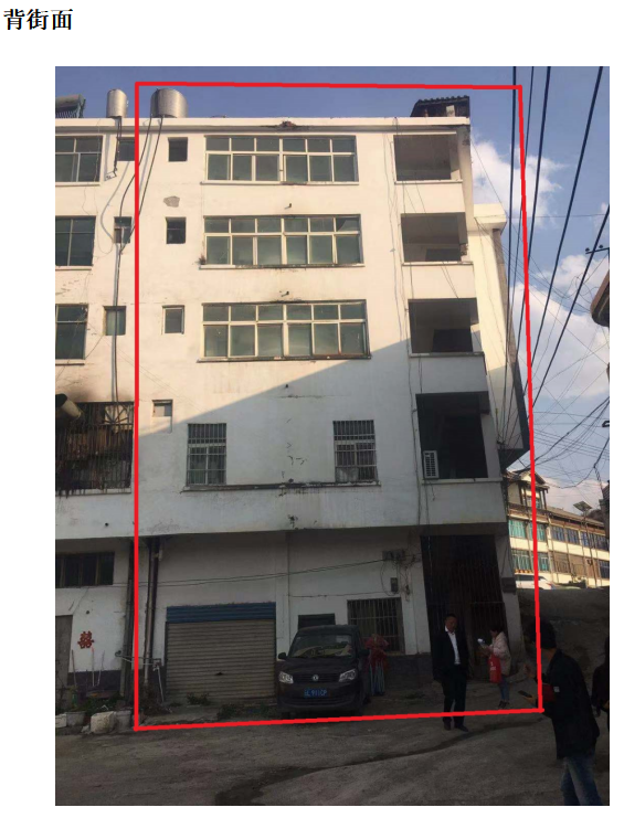 標(biāo)的描述:標(biāo)的有層差,當(dāng)街面為四層,包含三個(gè)門(mén)面,背街為五層,建筑位于威寧縣中水鎮(zhèn)居樂(lè)村老信用社,為混合結(jié)構(gòu),2005年竣工,周邊為臨街門(mén)面及自建房,及中水中學(xué)、中水鎮(zhèn)中水小學(xué)、中水鴻運(yùn)酒店、中水信用社、鑫隆超市,周邊環(huán)境較好。該棟建筑物外墻刷涂 料,負(fù)一層地面為水泥清光地面,內(nèi)墻與天花刷白,卷簾門(mén)及鐵門(mén),水電明裝;一樓內(nèi)墻貼磚,天花刷白,地面鋪地磚,鋁合金推拉門(mén)及鋁合金窗,水電暗裝;二-四層內(nèi)墻與天花刷白、地面鋪地磚, 鋁合金窗,木門(mén)、水電明裝。