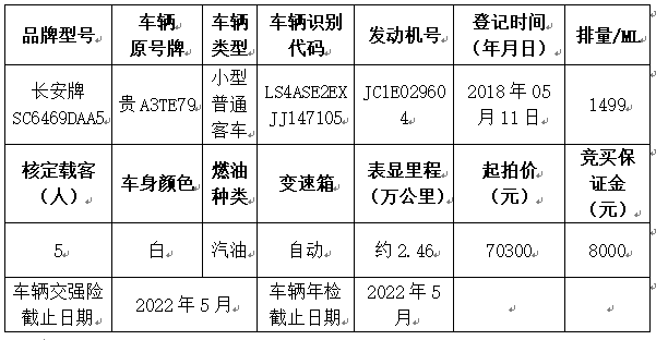 一、拍賣標(biāo)的:長安牌SC6469DAA5小型普通客車一輛。