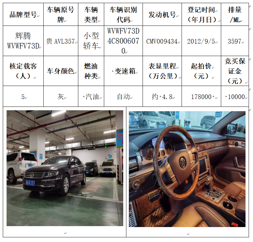 拍品編號1:輝騰WVWFV73D小型轎車一輛