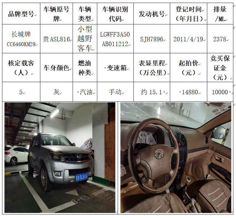 拍品編號6:長城牌CC6460KM29小型越野客車一輛