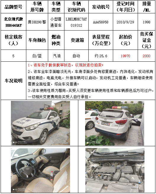 拍品編號1:北京現(xiàn)代牌BH6440AY小型普通客車一輛