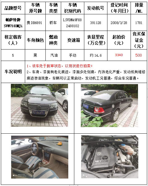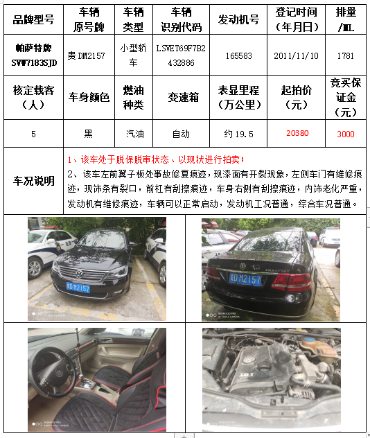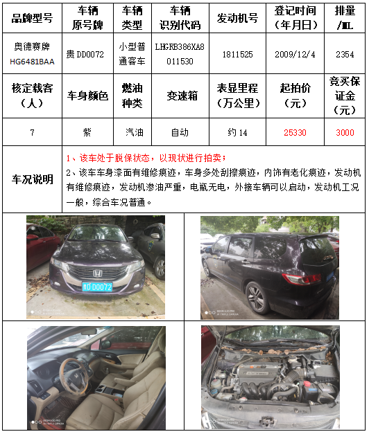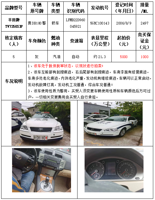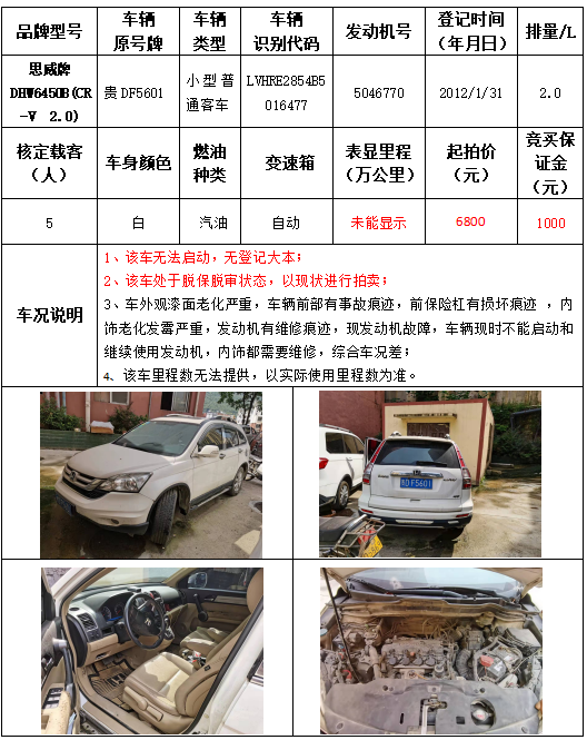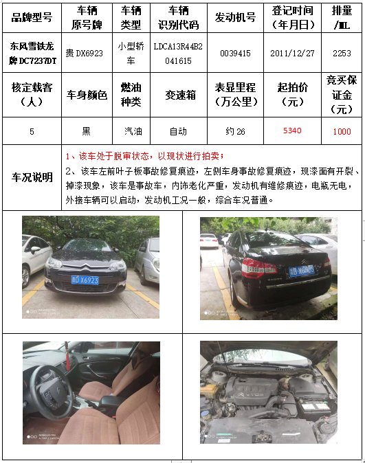 受委托,本公司定于2021年9月16日(星期四)下午14:30時(shí),在銅仁市碧江區(qū)川硐教育園區(qū)誠信路銅仁市公共資源交易中心開標(biāo)六室(拍賣大廳)公開拍賣以下車輛: