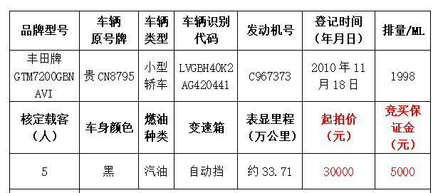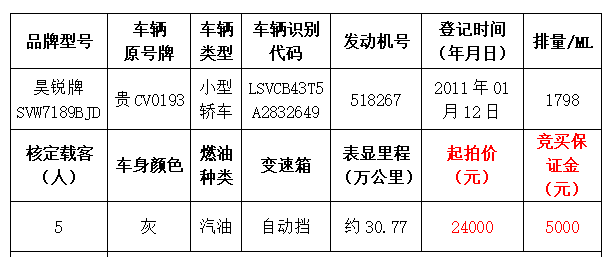 中國農(nóng)業(yè)銀行股份有限公司遵義分行車輛拍賣