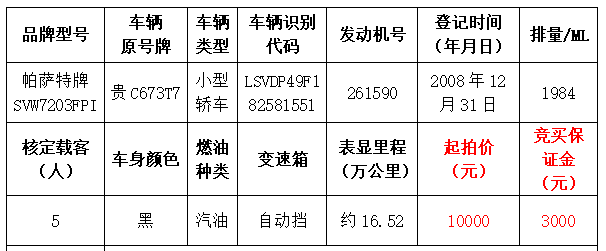 本次拍賣會的拍品編號6:帕薩特牌SVW7203FPI小型轎車原機(jī)動(dòng)車登記證書遺失,拍賣成功后委托方將協(xié)助買受人補(bǔ)辦遺失證件完成過戶手續(xù)。