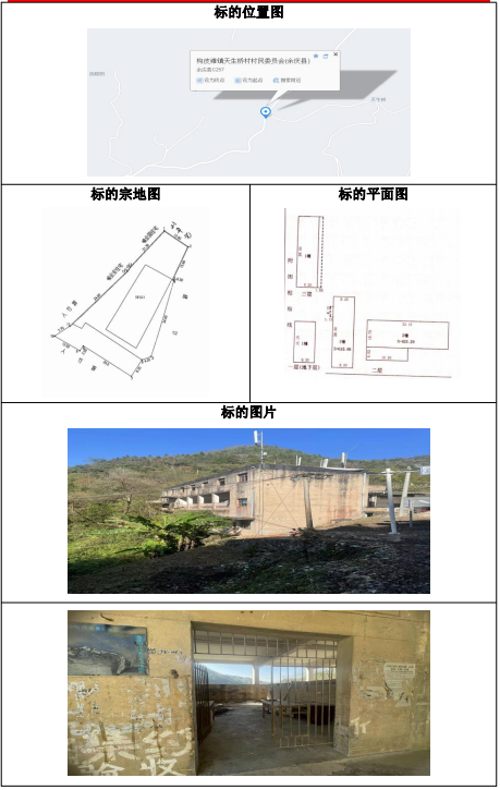 2、天生橋收購點:坐落于余慶縣構皮灘鎮(zhèn)天生橋村;土地使用權性質:劃撥;證載土地使用權面積:1513.1㎡;證載建筑面積:1040.95㎡;起拍價:15.93萬元;保證金:2萬元;