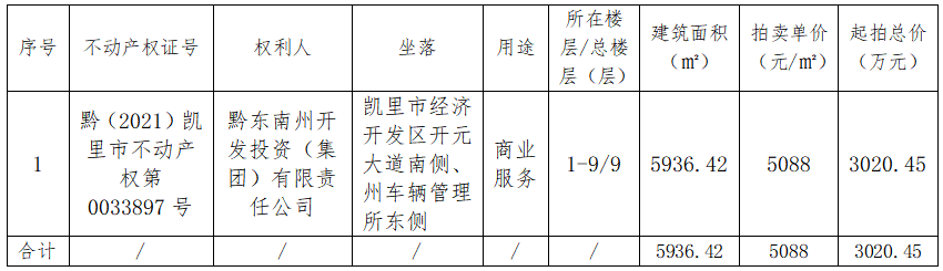 受黔東南州開發(fā)投資(集團)有限責(zé)任公司委托,我公司定于2022年01月06日(星期四)下午14:30時在黔東南州公共資源交易中心多功能廳公開拍賣以下標(biāo)的:
