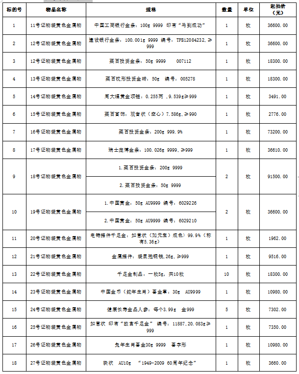 注:本場拍賣標的有證書或經(jīng)過質(zhì)檢,按現(xiàn)狀進行拍賣,競買人自行判斷。報名后持報名成功短信進入展示現(xiàn)場看樣,看樣時需提前預約,配合工作人員安排。競價成功的買受人需公示期過后付款提貨。競買人需到現(xiàn)場查驗,如未到現(xiàn)場實地看樣的競買人,視為對本標的實物現(xiàn)狀的確認,責任自負。成交后買受人需向拍賣人另行支付成交價2%的傭金。競買人應于2022年1月13日上午09:10時前入場,遲到視為放棄此次競拍。