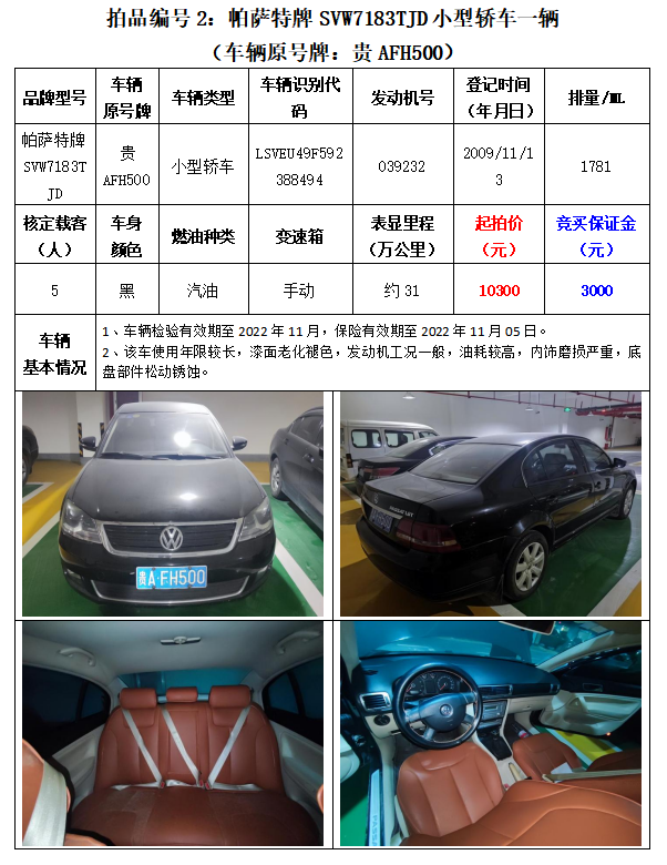 1、帕薩特牌SVW7183TJD小型轎車2輛;