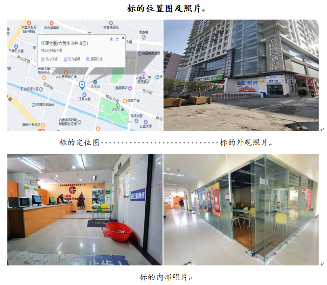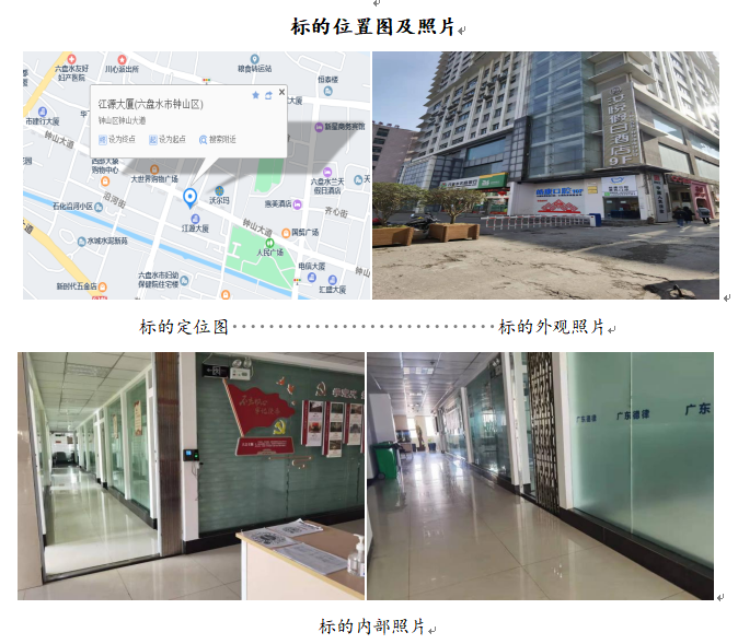 標的位于六盤水市鐘山區(qū)鐘山中路江源大廈46號6層601室的商業(yè)房地產(chǎn),建筑面積為1181.04㎡,樓幢總層數(shù)為27層,所在樓憧為鋼筋混凝土結構,建成于2010年。