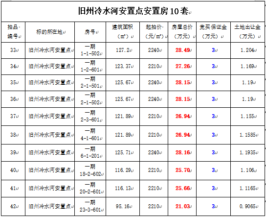 2、黃平縣舊州冷水河安置房10套,建筑面積:95.16—127.2㎡,起拍單價(jià):2210—2240元/㎡,起拍總價(jià):21.03—28.49萬元;