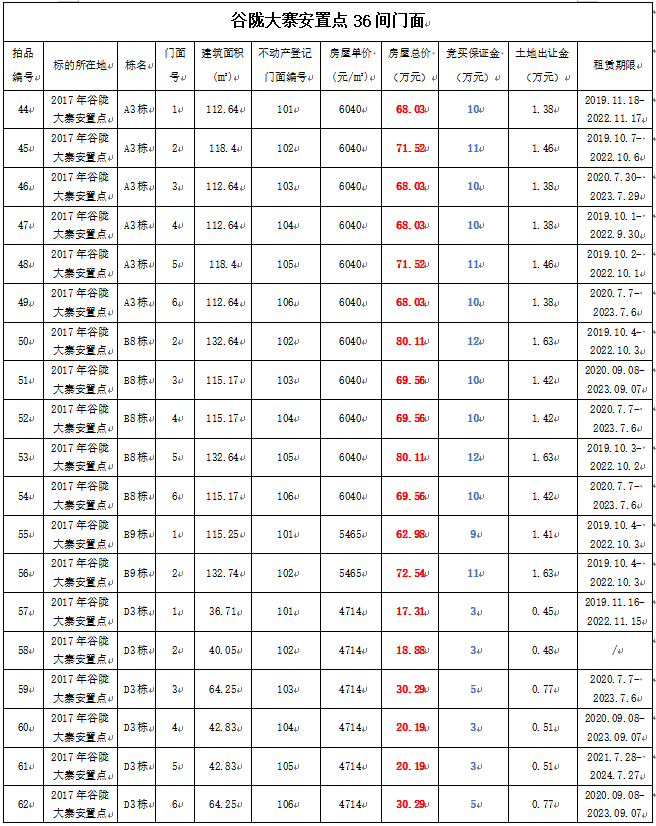 4、黃平縣谷隴大寨安置點(diǎn)門面36間,建筑面積:34.09—132.74㎡,起拍單價(jià):4073—6040元/㎡,起拍總價(jià):13.88—80.11萬元;