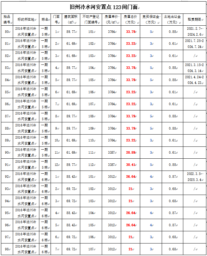 5、黃平縣舊州冷水河安置點(diǎn)門面123間,建筑面積:53.55—127.3㎡,起拍單價(jià):3012—4713元/㎡,起拍總價(jià):18.56—58.97萬元;