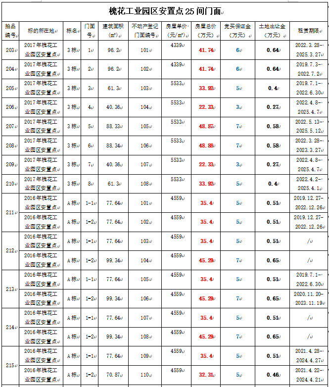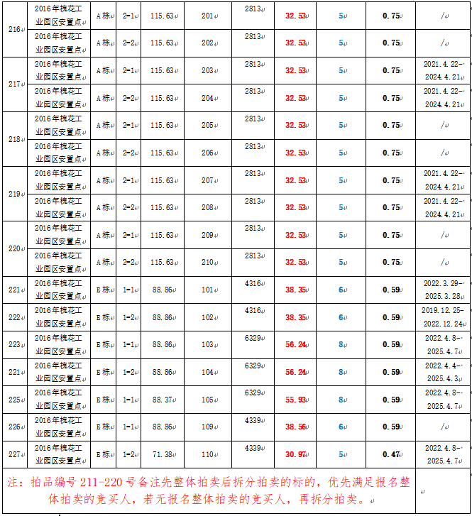 6、黃平縣槐花工業(yè)園區(qū)安置點(diǎn)門面25間,建筑面積40.36—115.63㎡,起拍單價(jià):2813—6329元/㎡,起拍總價(jià):22.33—56.24萬元。