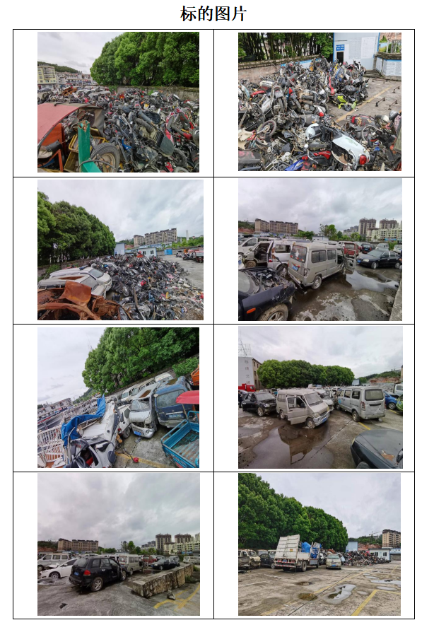架子摩托車、踏板摩托車、三輪摩托車、面包車、小轎車、皮卡車、大貨車一批(均作為報廢物資整體拍賣)。