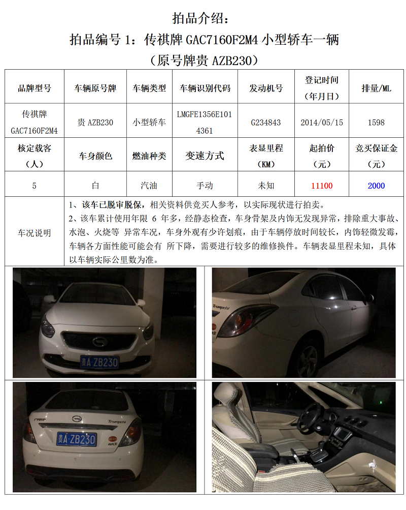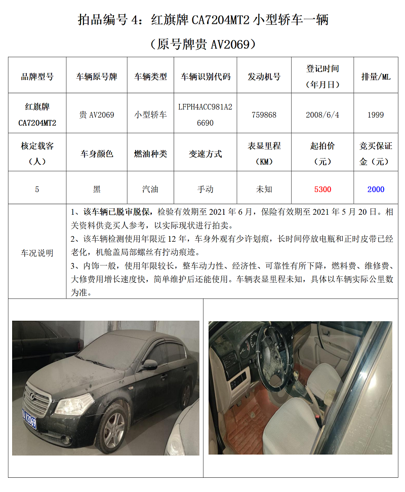 機(jī)動(dòng)車拍賣公告