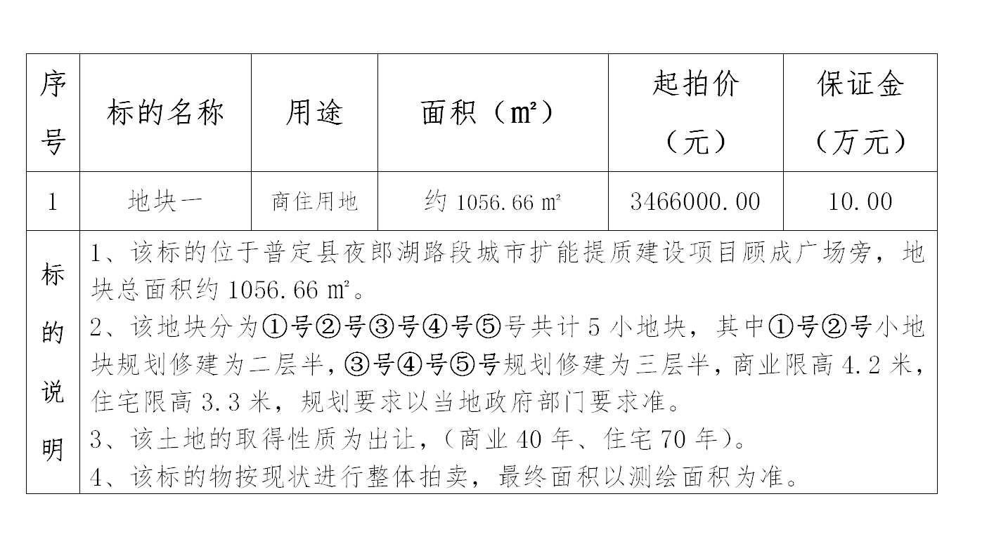 起拍價(jià):地塊一 ¥ 3466000.00元 保證金:10萬元