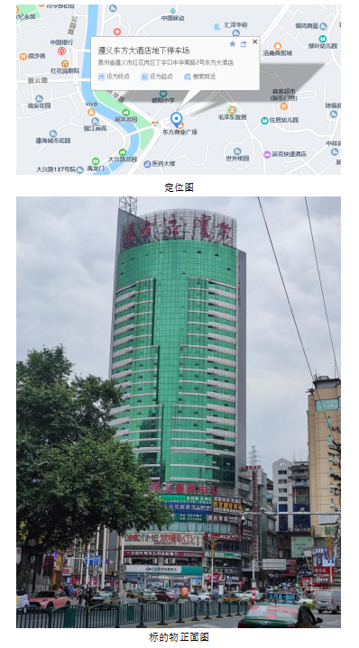 (1)該標(biāo)的位于遵義市丁字口遵義大飯店主塔樓7層,地處遵義市繁華地段,周邊商業(yè)氛圍濃重,交通便利,水、電、電梯、通訊、消防等設(shè)施齊全,無物業(yè)費。