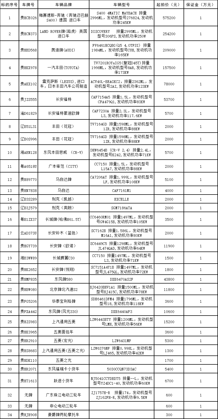 受委托,我公司將于2022年8月18日9:10在貴州省黔東南州公共資源交易中心及中拍平臺(tái)采用網(wǎng)絡(luò)與現(xiàn)場同步競價(jià)方式公開拍賣奔馳邁巴赫S400、路虎發(fā)現(xiàn)、奧迪Q5、皇冠、雷克薩斯等涉案車輛34輛(可憑裁定書自行辦理過戶)。